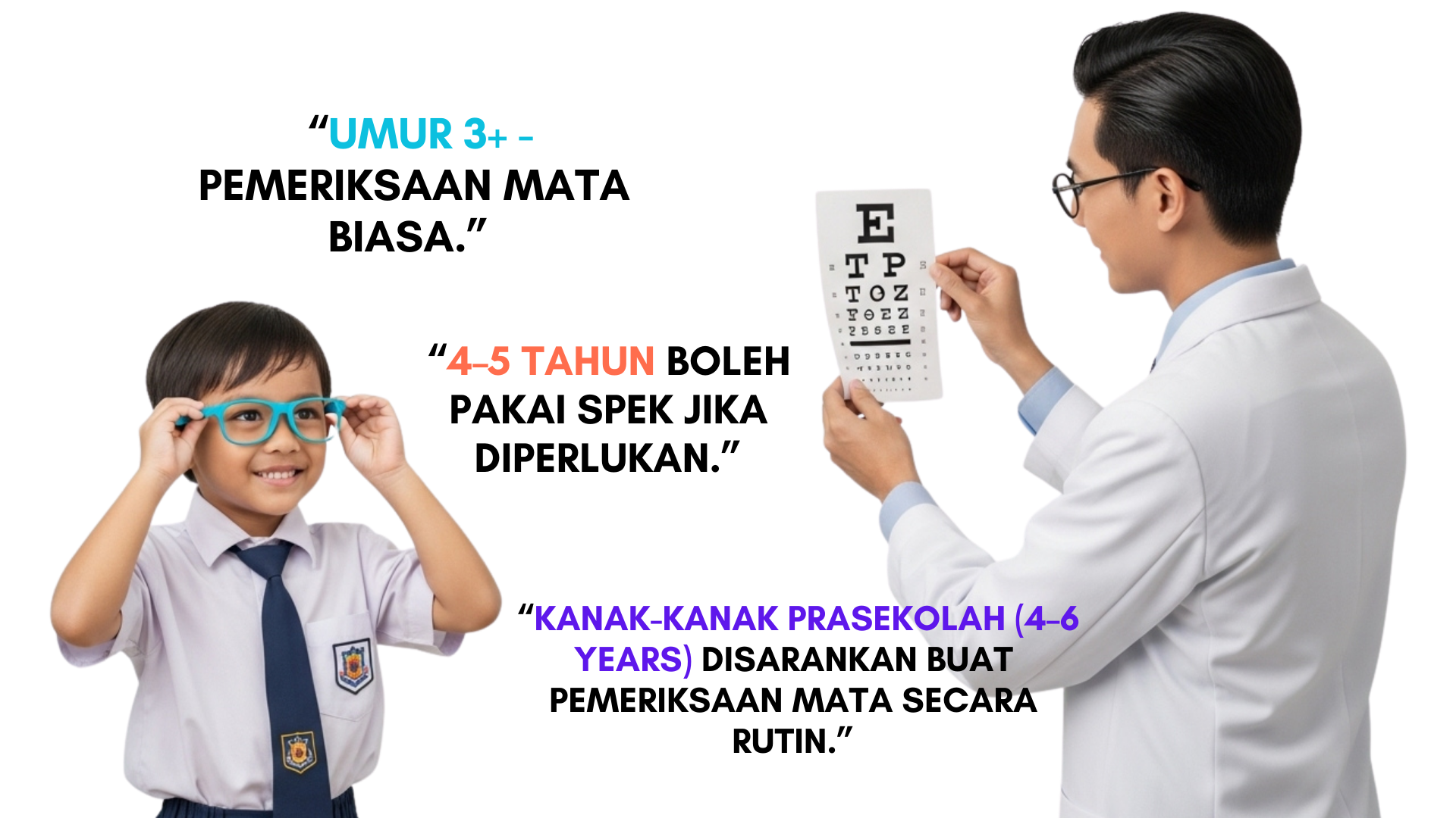 ✅ Umur 3 tahun ke atas sudah boleh mula jalani pemeriksaan mata asas.